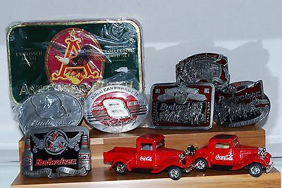 Budweiser 6 Belt Buckles /Card Set / Coca Cola 1932 / 1934 Fords Lot of 9 SJ 80E
