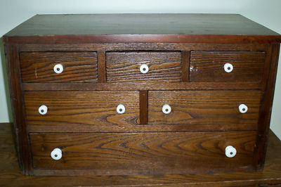 ANTIQUE 6 DRAWER TABLE TOP CABINET