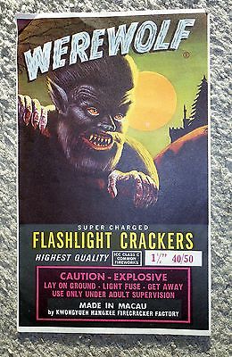 WEREWOLF FIRECRACKER LABEL, red lettering, ICC, 1 1/2", 40/50, Near Mint