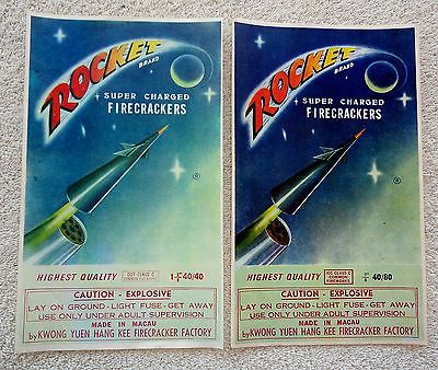 (2) Different Rocket Brand, Class 4 & 5, FIRECRACKER LABELS, Near Mint