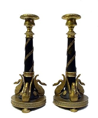 Title (ebay affiliate link): LOVELY GREAT QUALITY ORNATE VICTORIAN ERA BRASS / BRONZE FOOTED CANDLESTICK PAIR