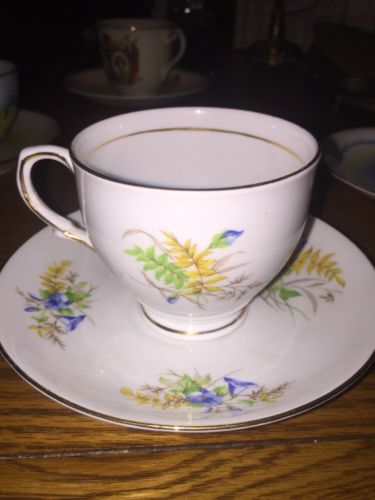 Vintage Clare Bone China Tea Cup and Saucer Small Blue Flowers