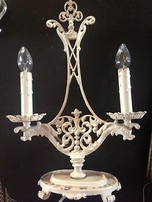 Title (ebay affiliate link): Antique Wrought Iron Decorative Candelabra Table Lamp Art Nouveau Pattern