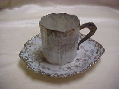 Vintage Oriental Cherry Blossom Design Silver Overlay Dem Cup and Saucer Rare