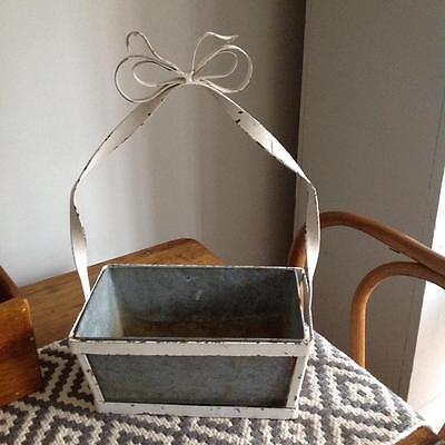 Vintage primitive rustic tin metal galvanized shabby basket planter tin basket