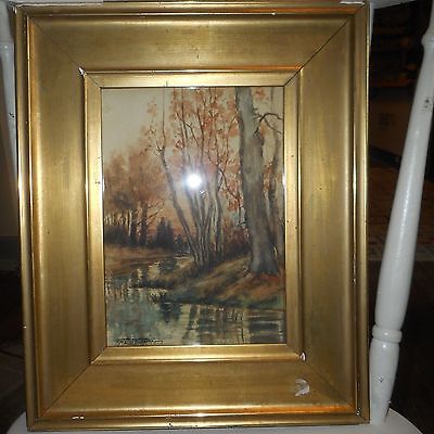 Vintage Watercolor Painting-LANDSCAPE AUTUMN TREE'S BY RIVER-Signed Salisbury