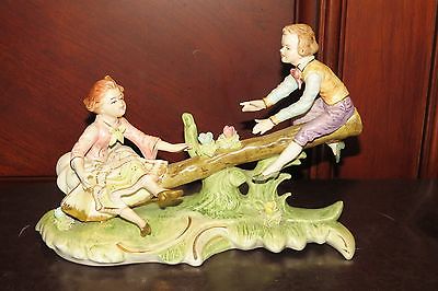ANTIQUE CAPODIMONTE STYLE Boy and Girl on Seesaw Teeter Totter - JAPAN