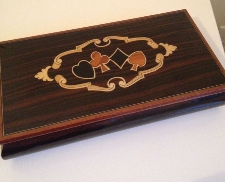 Title (ebay affiliate link): Vintage Italy Marquetry Wood Inlay Playing Cards Box heart club diamond spade