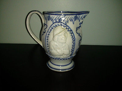 Title (ebay affiliate link): Antique Unique Hand Decorated Smiling Face Blue/ White Creamer RARE!