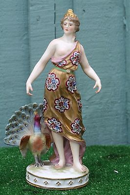 STUNNING 19thC SITZENDORF of GERMANY SEMI NAKED FEMALE FIGURINE & PEACOCK c1880s