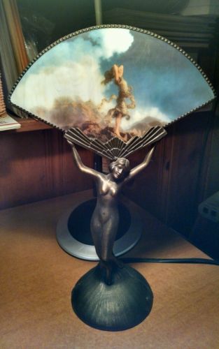 Title (ebay affiliate link): Art Deco/Nouveau Style Metal Nude Woman Lamp, Slag Glass Shade Works L@@K!