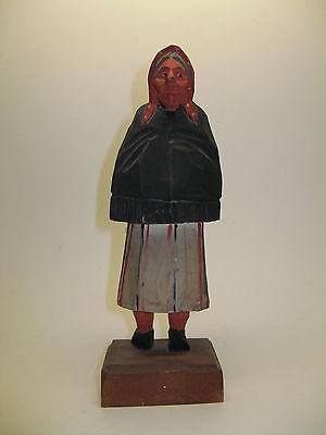 VTG QUEBEC CANADA FOLK ART NATIVE INDIAN WOMAN CARVED WOOD SCULPTURE SGN HANNAH