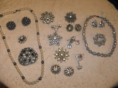 #38 15 PC OLD ANTIQUE JEWELRY RHINESTONE PCS LOOK