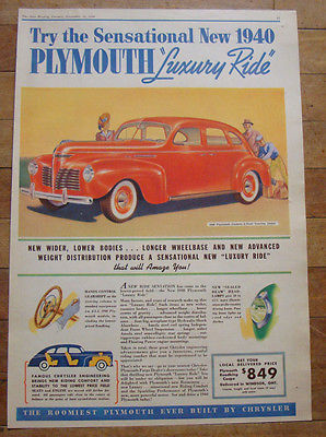 STUNNING 1940 CANADIAN CAR AD PLYMOUTH DODGE CUSTOM 4 DOOR TOURING SEDAN