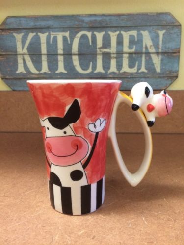 Title (ebay affiliate link): Happy Cow Tall Coffee Cup Beverage Mugs Indra Fine Stoneware