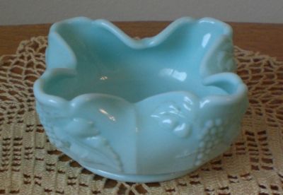 Old Fostoria Opaque Blue Milk Glass Pinch Bowl In Grape