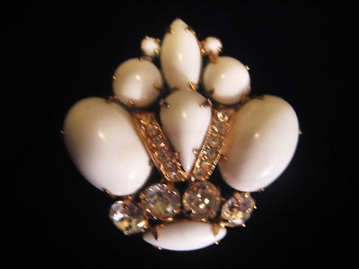 Weiss Rhinestone and Milk Glass Regal Brooch