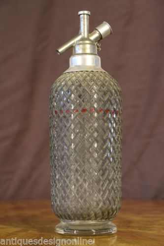 Title (ebay affiliate link): Antique English signed SODA SYPHON Deco silver wire basket weave surround 1920s
