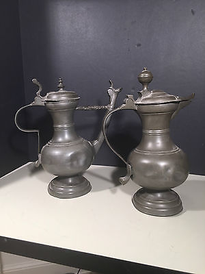 TWO c.1700 Antique Pewter FLAGONS Unknown Touchmark English American