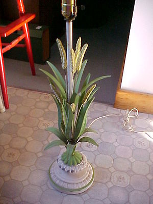Title (ebay affiliate link): Lamp - Old Heavy Metal Flower Lamp, Metal Green Leaves with Spike Yellow Blossom