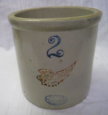 Vintage Red Wing 2 Gallon Crock Jug USA Minnesota Stoneware 4" Wing