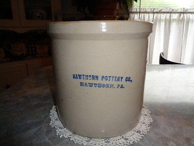 VINTAGE Hawthorn PA Stoneware Crock Jug Pottery Blue Stenciling