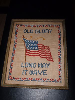 VINTAGE WOOD FRAME WITH PATRIOTIC EMBROIDERY - 48 STARS - c. 1940's