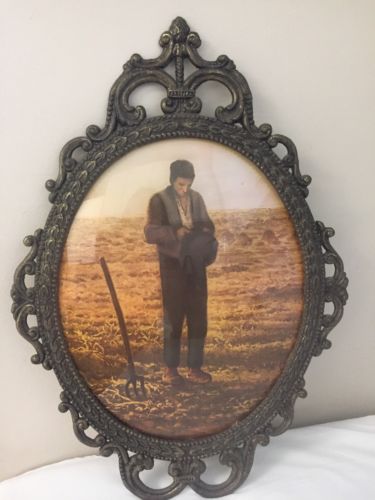 12 X 17.5 VINTAGE OVAL BUBBLE GLASS METAL FRAME, LARGE