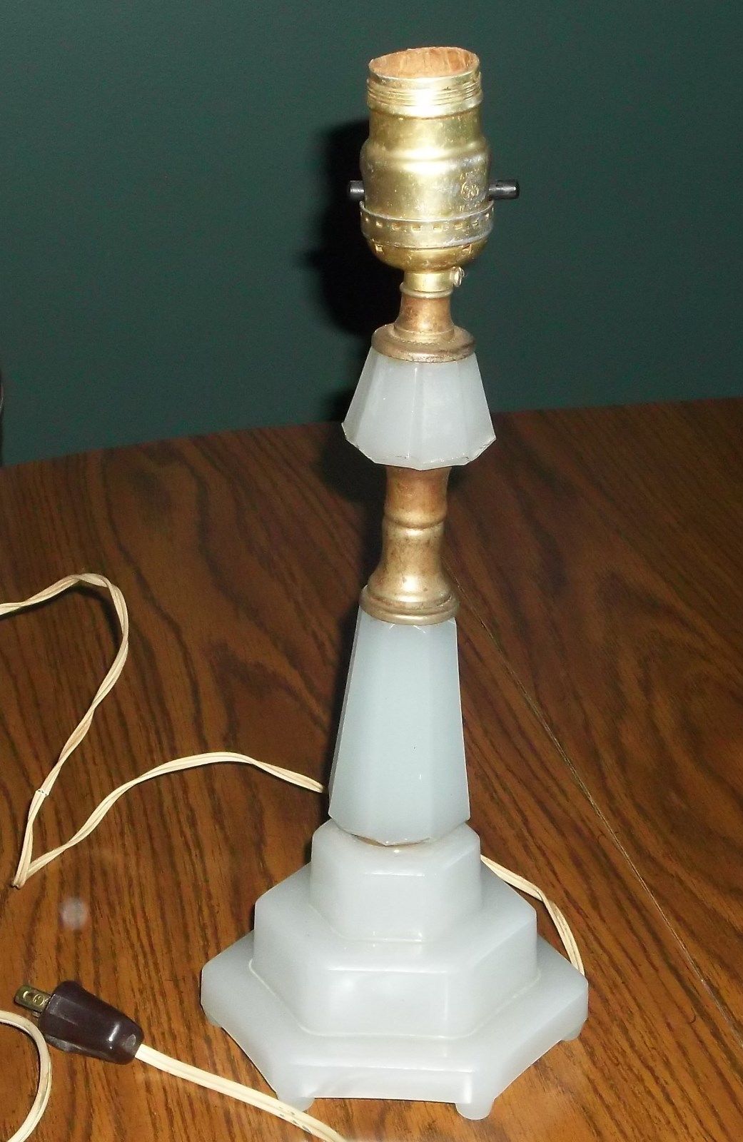 Art Deco White Jadeite Glass Hexagon Steps Vintage Table Lamp Light