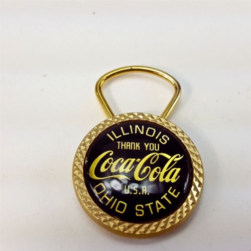 Coca-Cola Illinois Ohio State USA Thank You Gold Metal Key Ring Holder Vintage