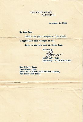 Louis Howe signature autograph Secretary to President Franklin Roosevelt