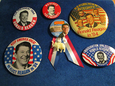 RONALD REAGAN FOR PRESIDENT 80'S POLITICAL BUTTON PINS LOT OF 6