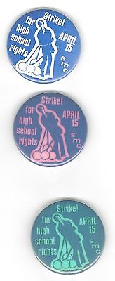 Title (ebay affiliate link): 3 Vintage 1970s High School Rights Political Cause Pinback Buttons Strike SMC