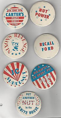 Title (ebay affiliate link): 7 Vintage 1976 Jimmy Carter Presidential Campaign Pinback Buttons Nut Power