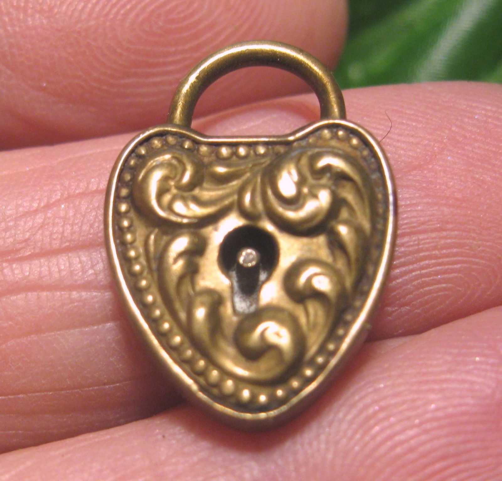 Title (ebay affiliate link): Antique HEART PADLOCK CHARM PAT JAN 31 1898 Repousse Design 7/8" Tall