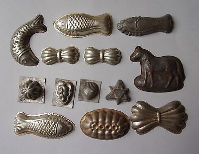 Lot of 13 Antique Figural Christmas Chocolate,Bisquits, Cookies tin molds