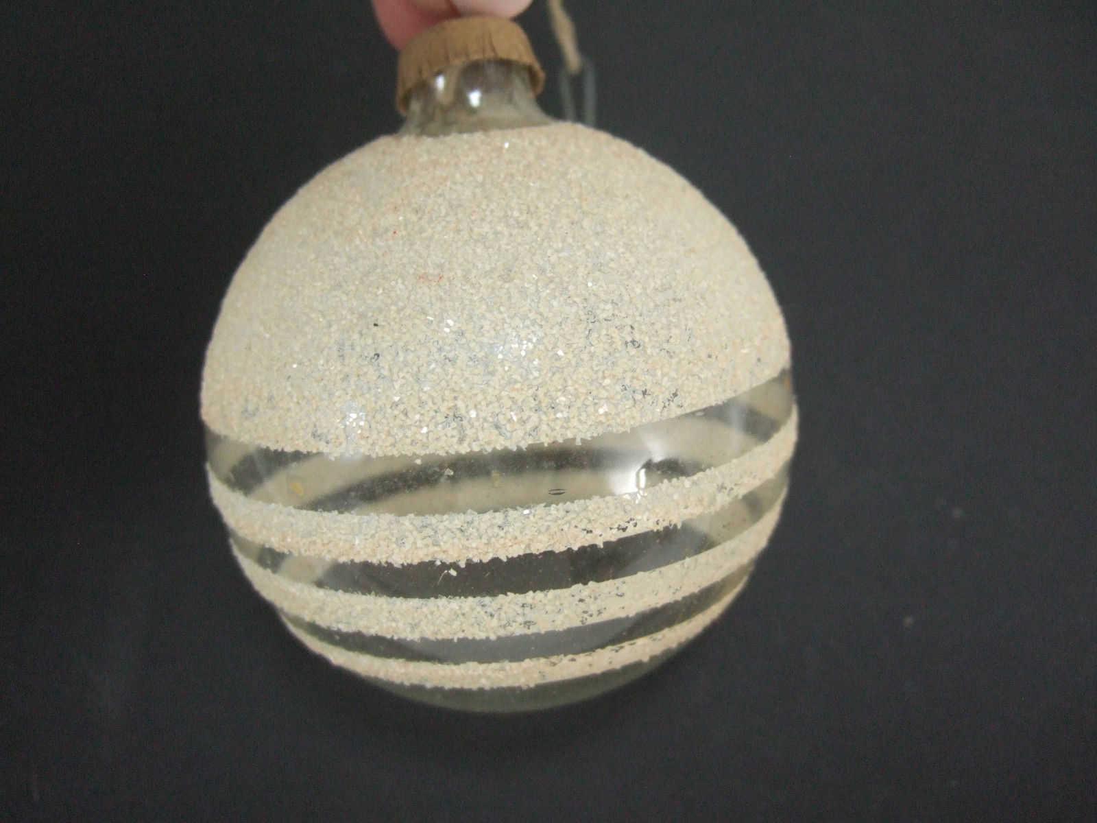 Title (ebay affiliate link): Vintage WW11 Unsilvered clear Glass Mica Stripe Paper Cap Christmas Ornament