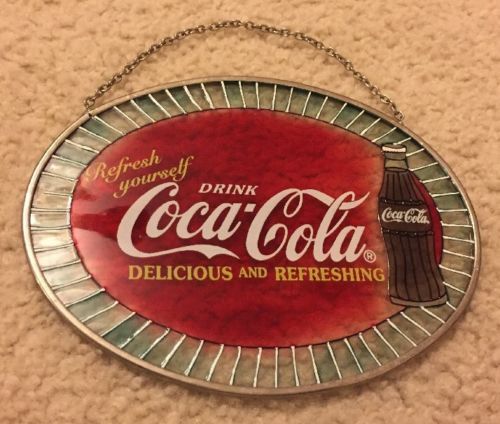 Title (ebay affiliate link): Coca Cola Stained Glass / Sun Catcher Ice Cold Coca Cola Oval 5x7