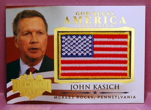 Title (ebay affiliate link): Decision 2016 John Kasich God Bless America GOLD FOIL Flag Patch Insert #GBA10