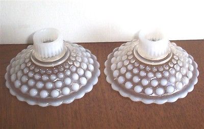 PAIR) Of OPALESCENT HOBNAIL Fenton DEPRESSION GLASS Candle Holders - MOONSTONE