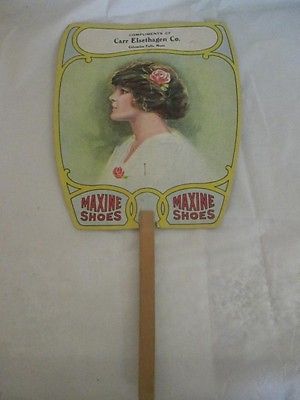 Title (ebay affiliate link): Advertising Fan Art Nouveau Woman Maxine Shoes Columbia Falls Montana