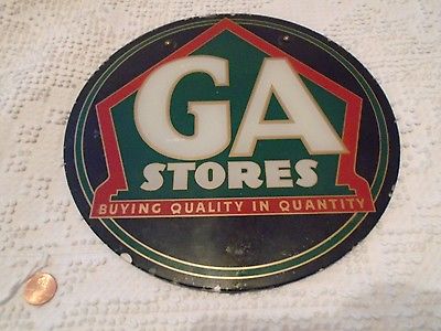 Vintage ** GA Stores ** Store Shop Glass ADVERTISING SIGN - 10"