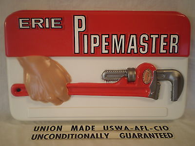 VINTAGE ERIE PA TOOL WORKS PIPEMASTER PIPE WRENCH EMBOSSED ADVERTISING SIGN
