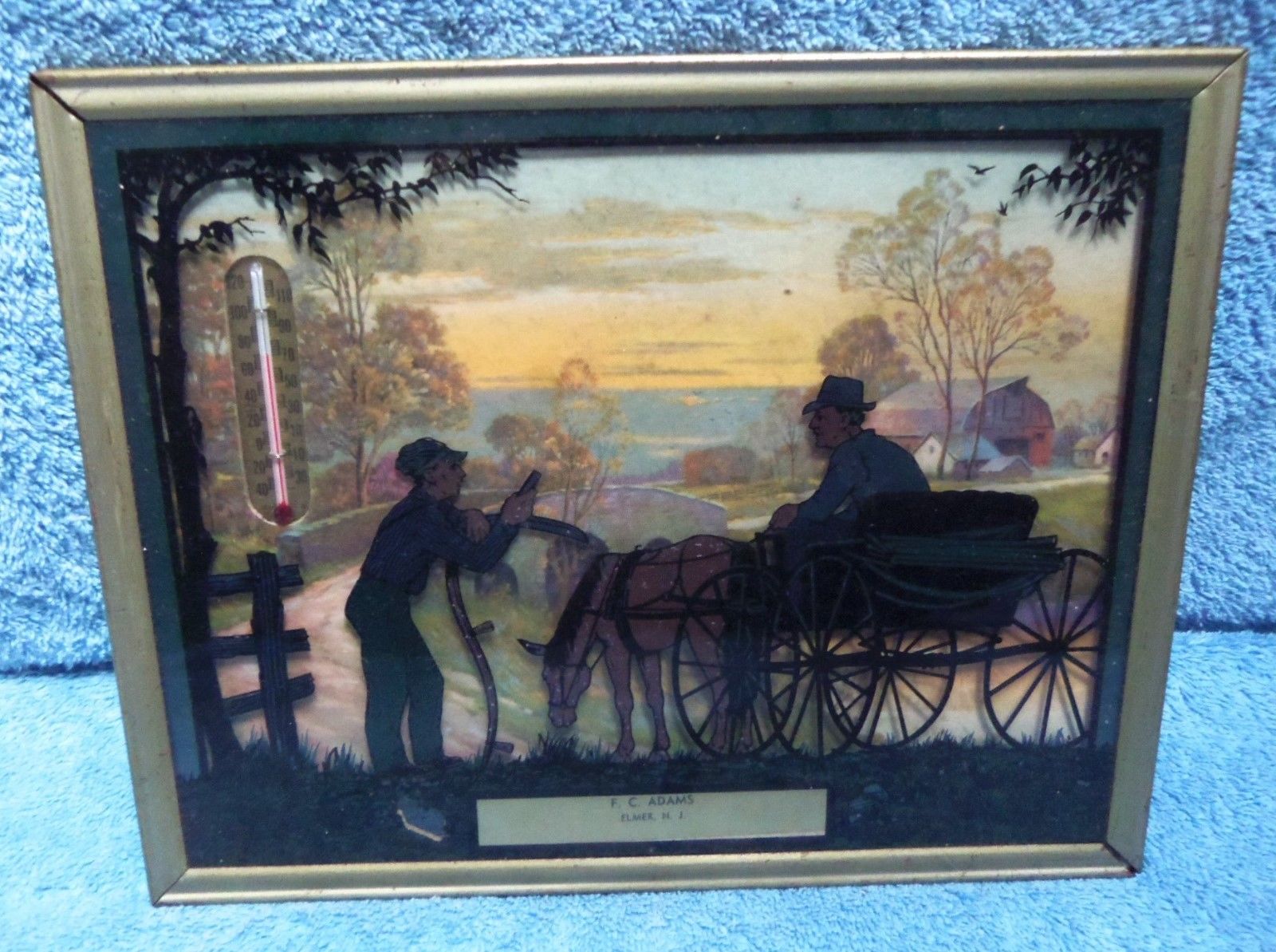 Vintage F.C. ADAMS Farm Scene Silhouette Advertising Thermometer Elmer NJ