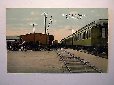 Title (ebay affiliate link): New York Central Railroad Station Lowville New York Train Buggy Car People