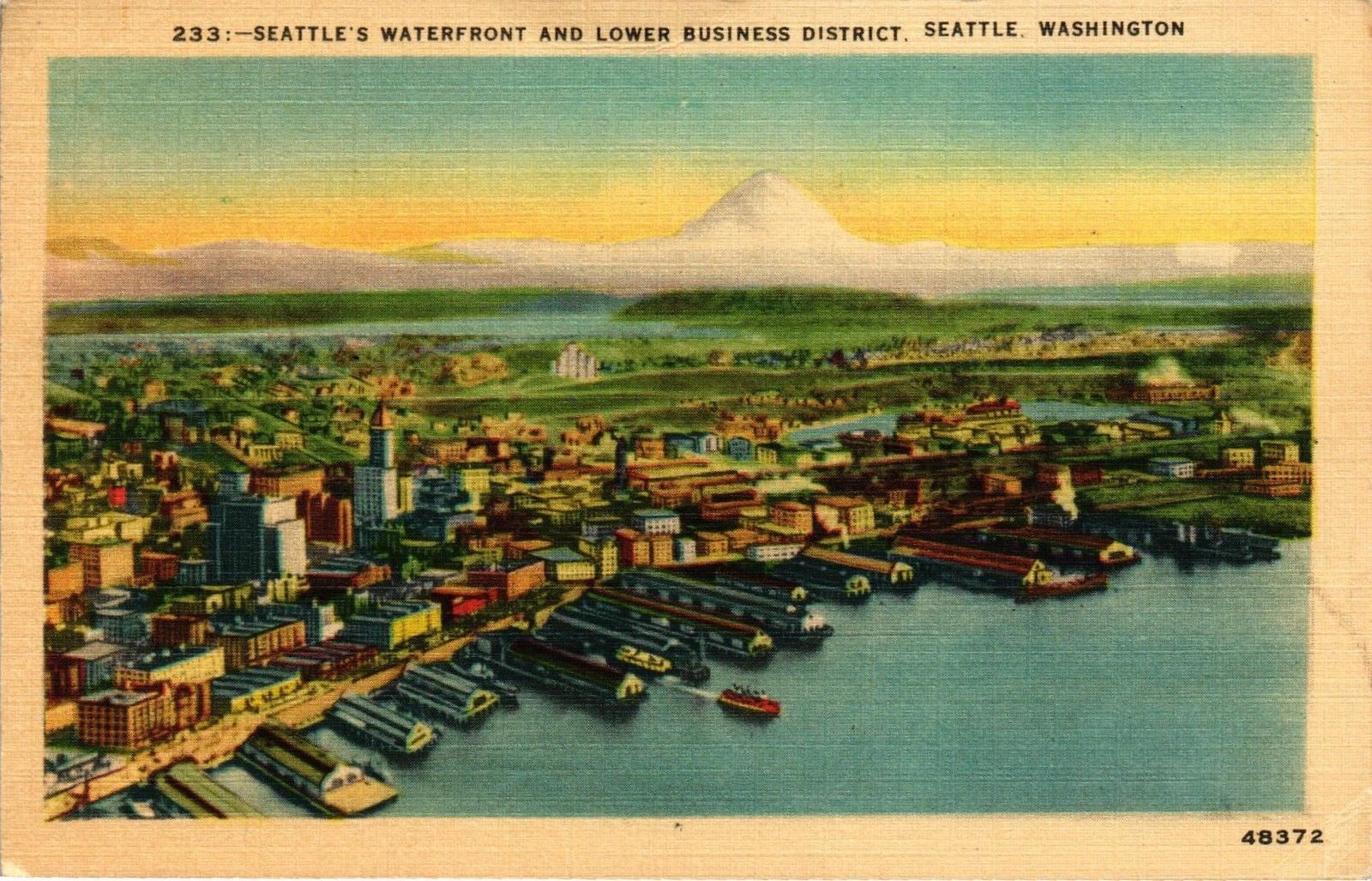DR JIM STAMPS US SEATTLES WATERFRONT DISTRICT LINEN POSTCARD