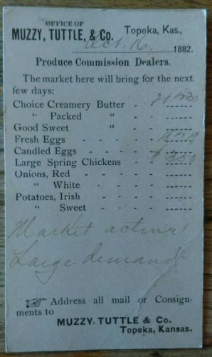 Title (ebay affiliate link): TOPEKA Kansas 1882 Muzzy Tuttle grocer 135 yr history 6th & Top Ave