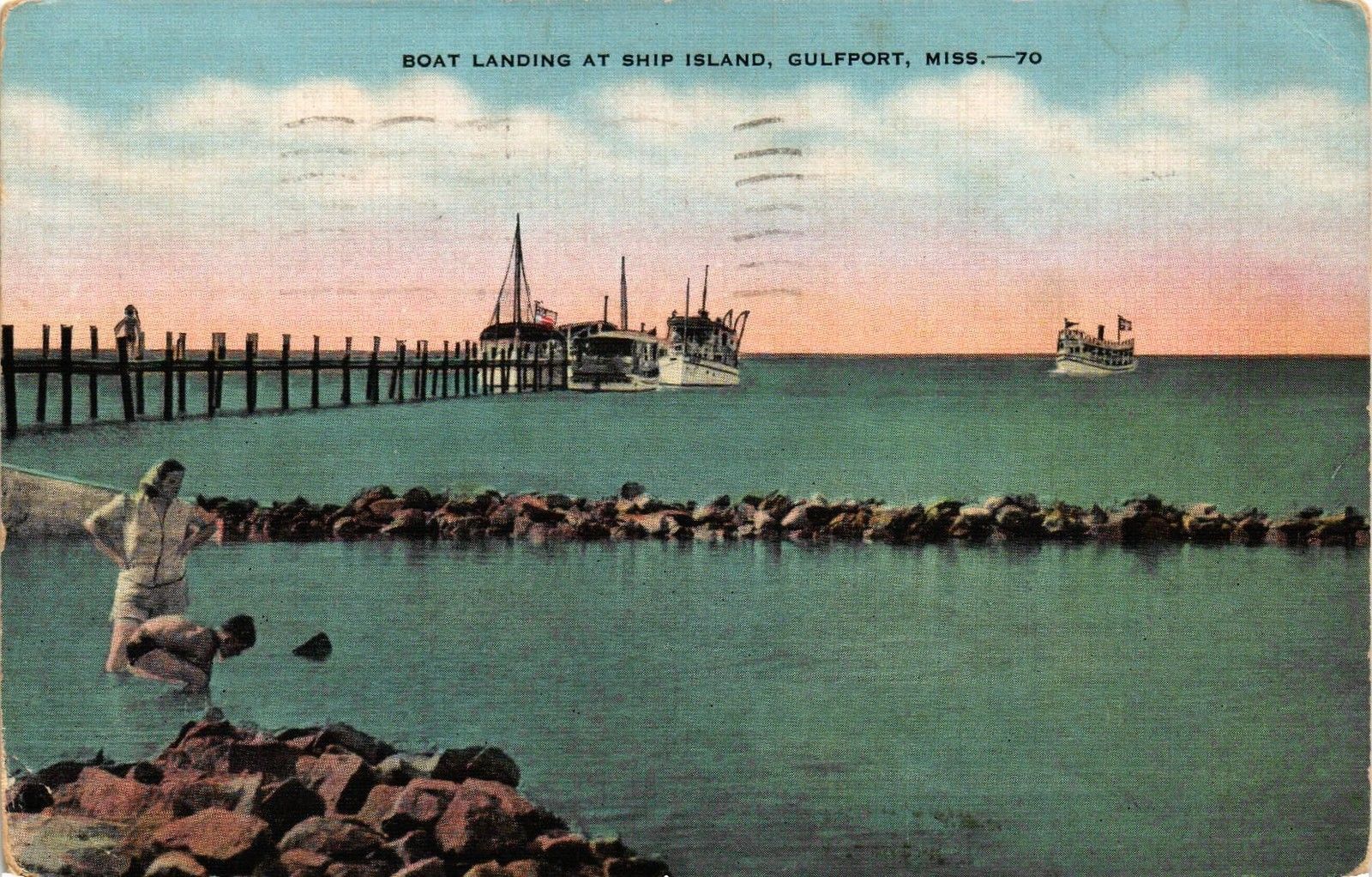 Title (ebay affiliate link): DR JIM STAMPS US BOAT LANDING AT SHIP ISLAND GILFPORT MS LINEN POSTCARD 1944