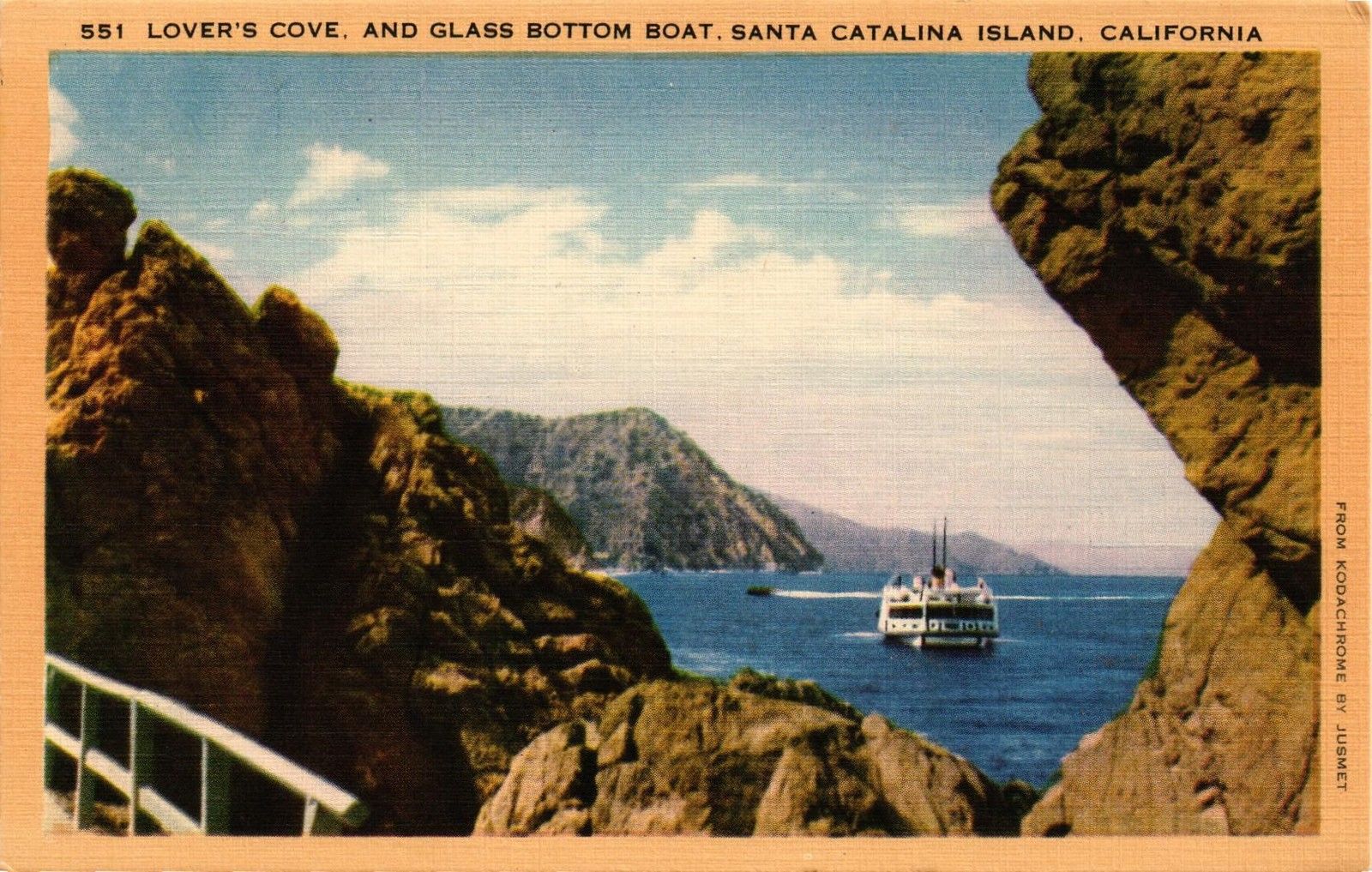 DR JIM STAMPS US LOVERS COVE SANTA CATALINA ISLAND CA LINEN POSTCARD