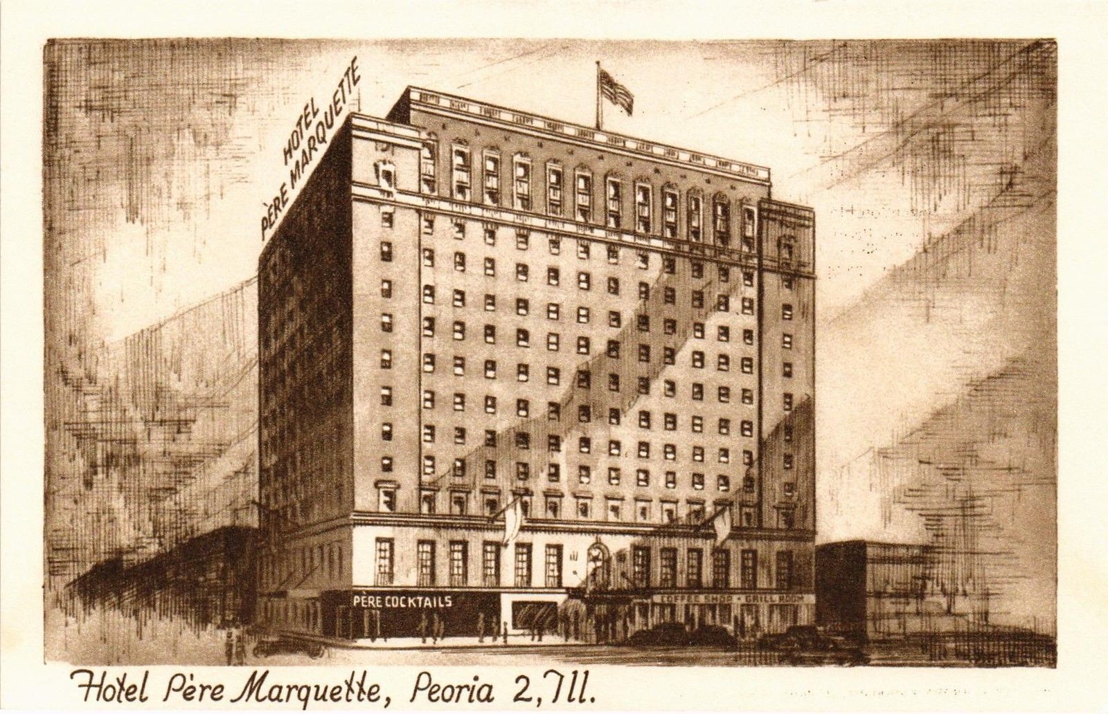 DR JIM STAMPS US HOTEL PERE MARQUETTE HOTEL PEORIA ILL POSTCARD